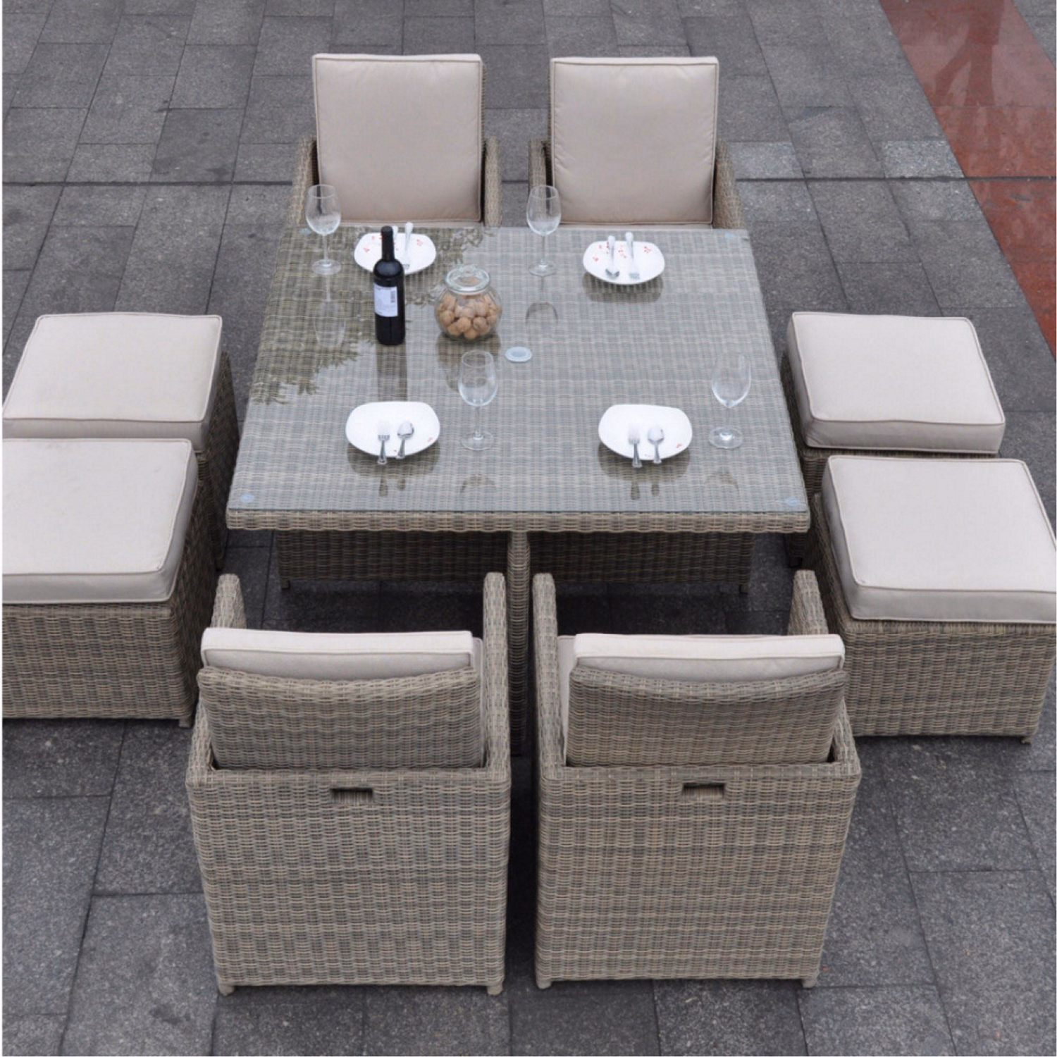 Cuba 4 Seat Cube Dining Set with Square Table Light Grey