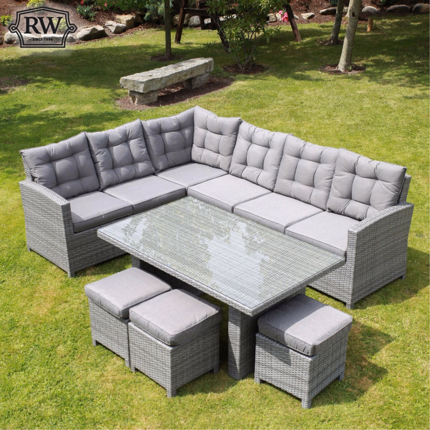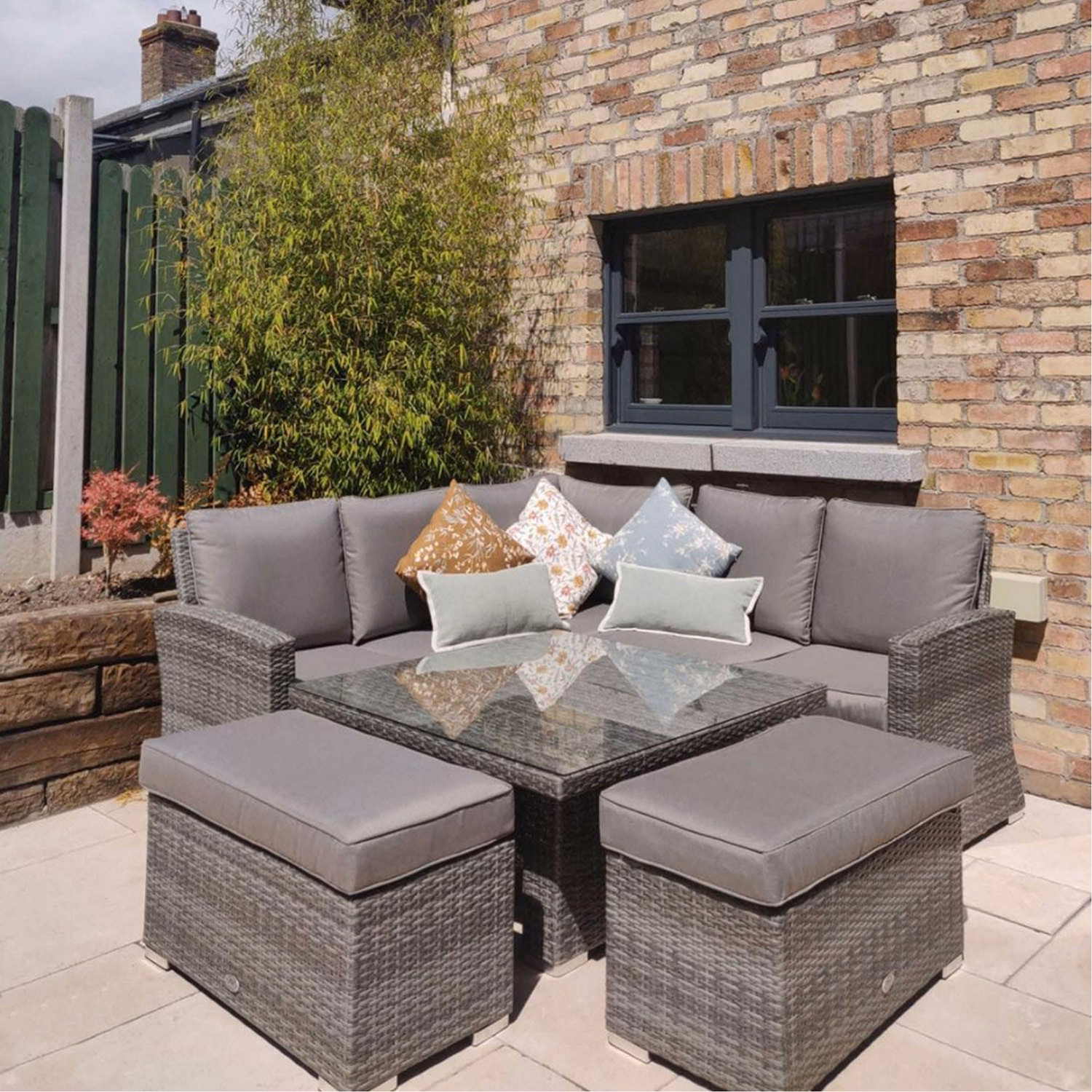 Cuba Corner Sofa Set with Square Rising Table Light Grey
