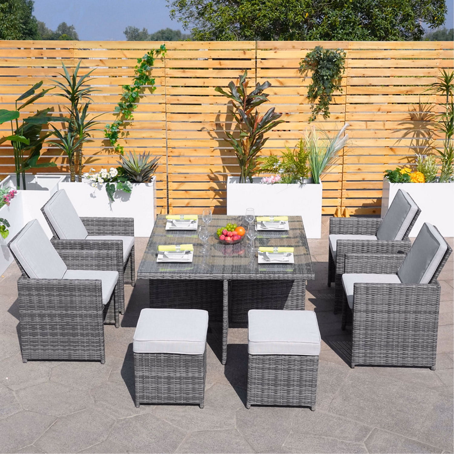 Berlin 4 Seat Cube Set with Square Table Grey