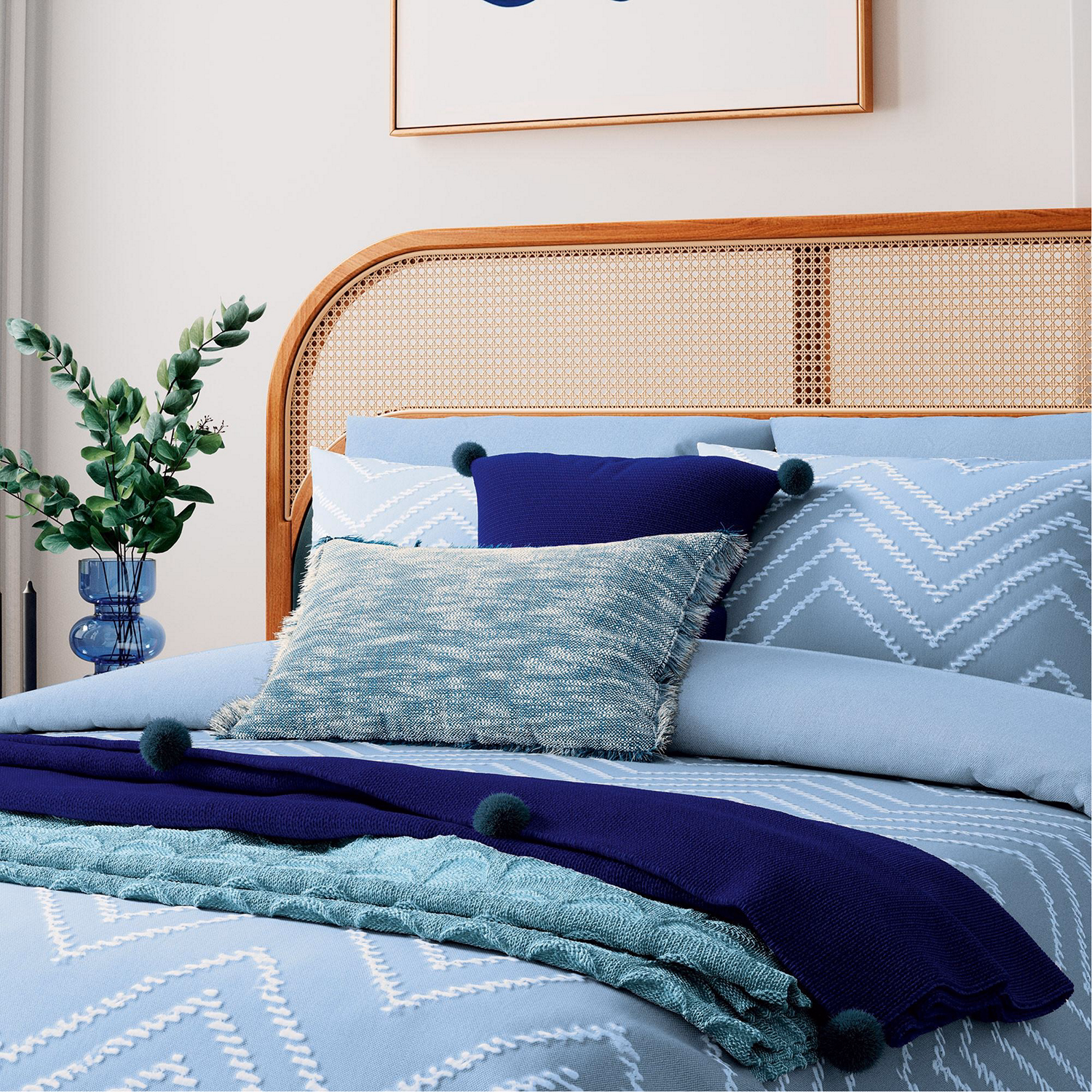 Woven Zig Zag Duvet Set Blue
