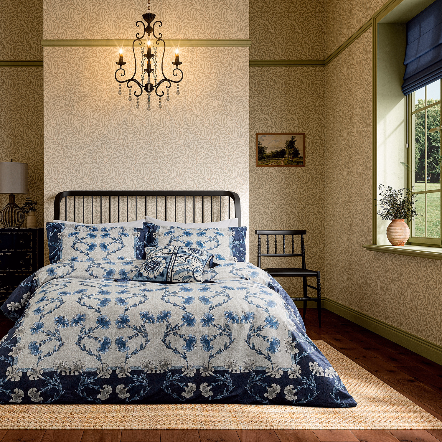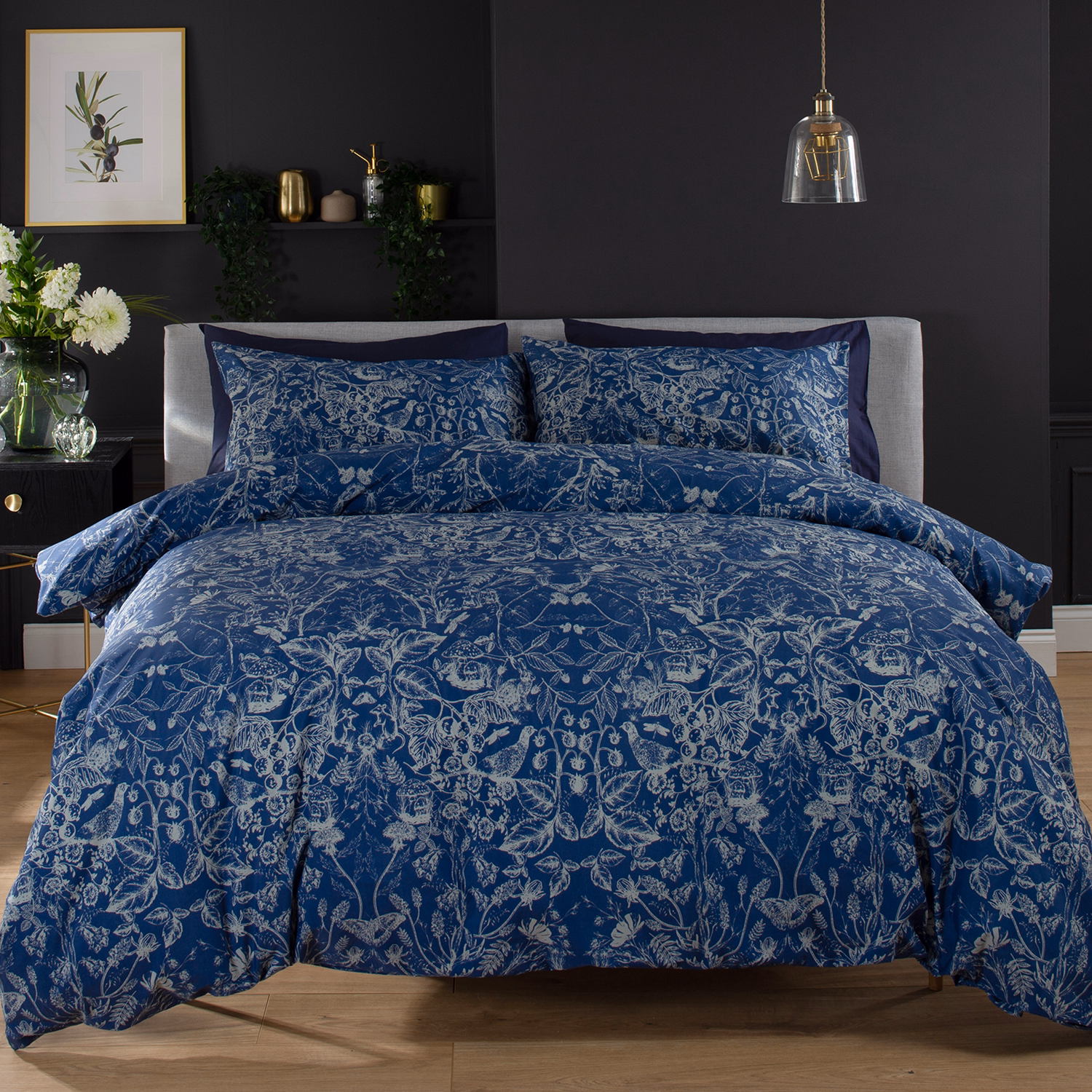 Scrolling Carnation Duvet Set Indigo