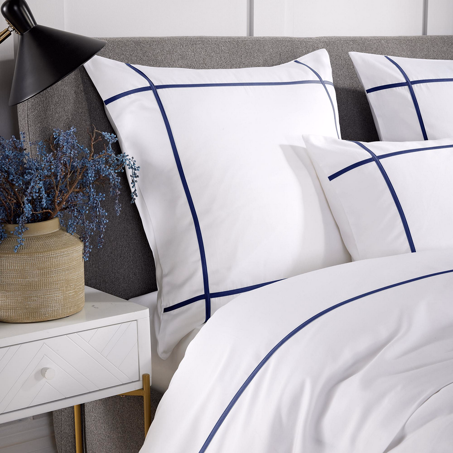 400 Thread Count Banded Square Pillowcase Navy