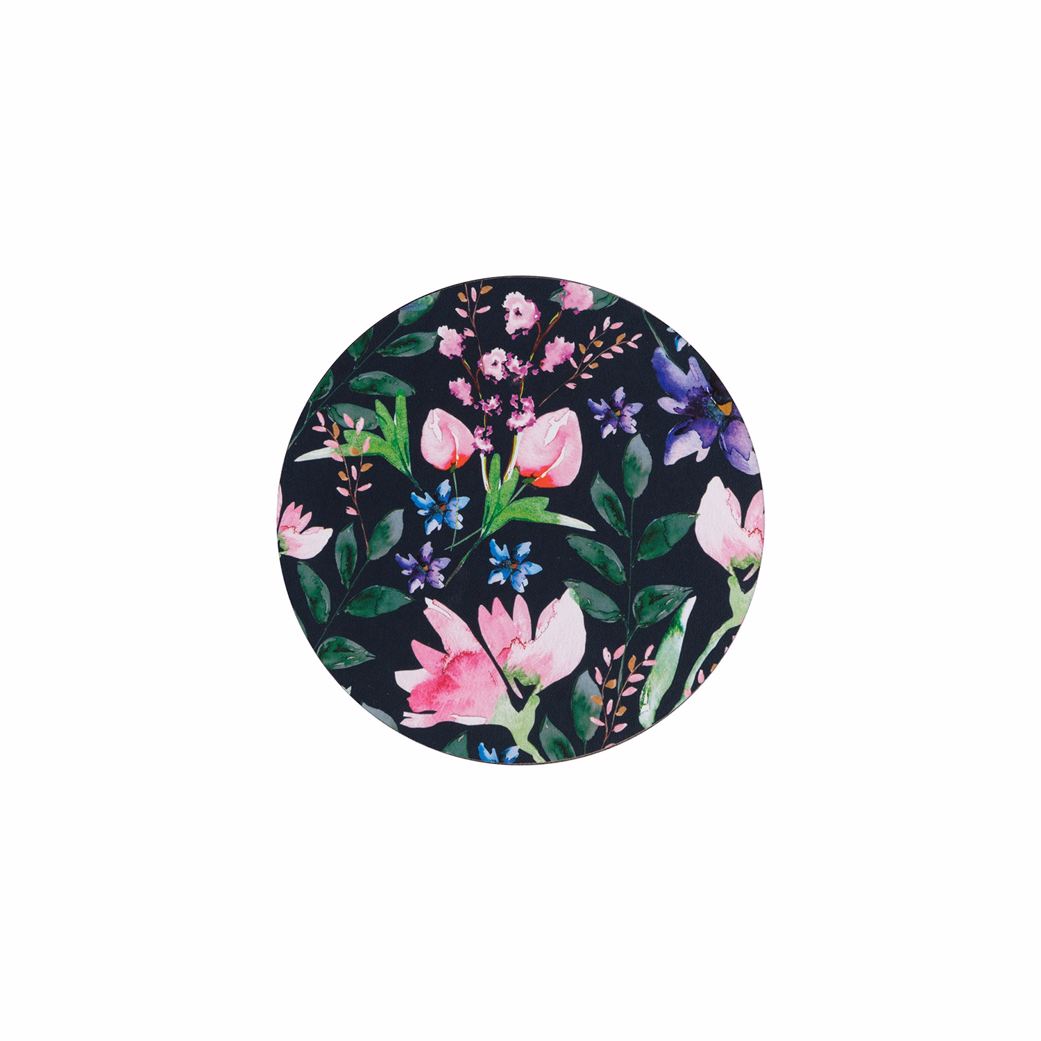 Set Of Six Dark Floral Round Coasters