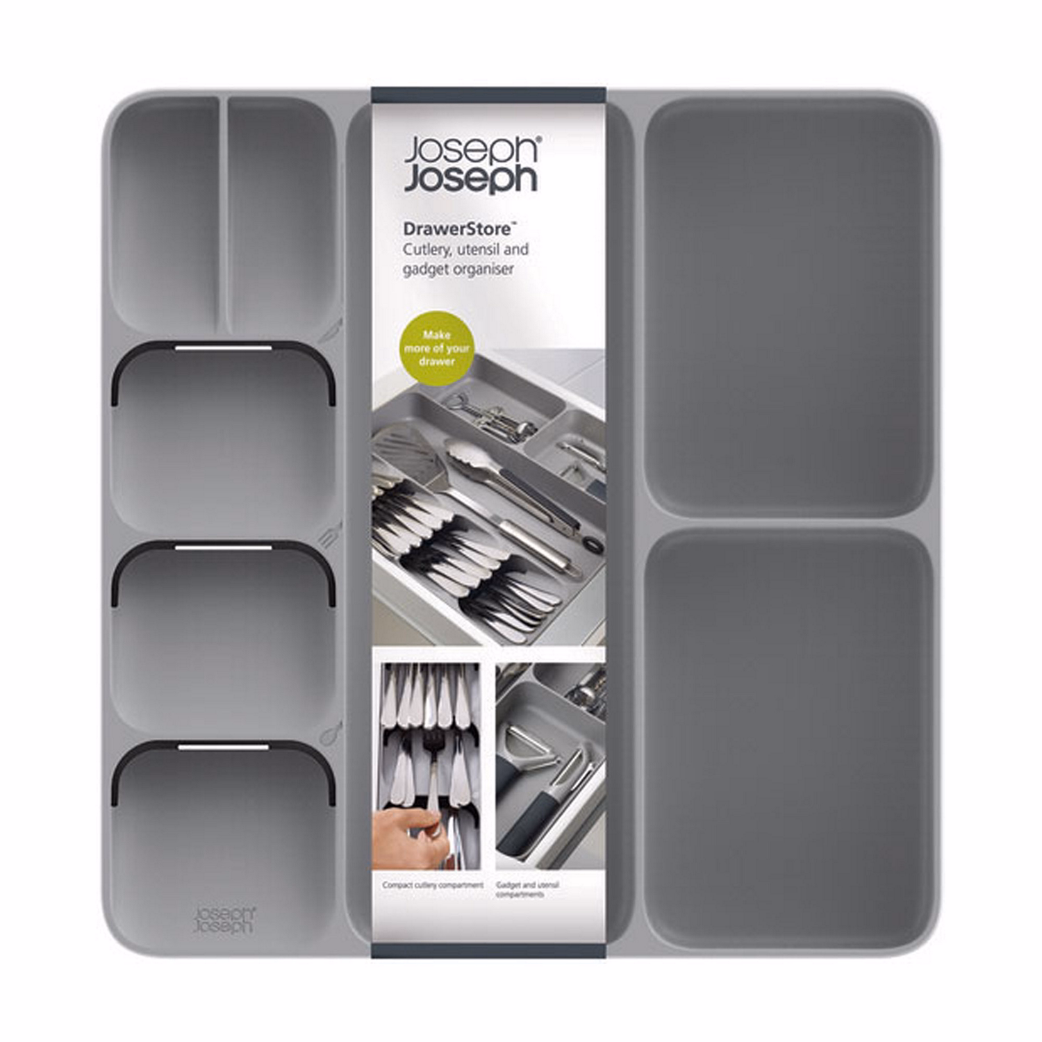 DrawerStore Large Compact Cutlery Organiser Grey