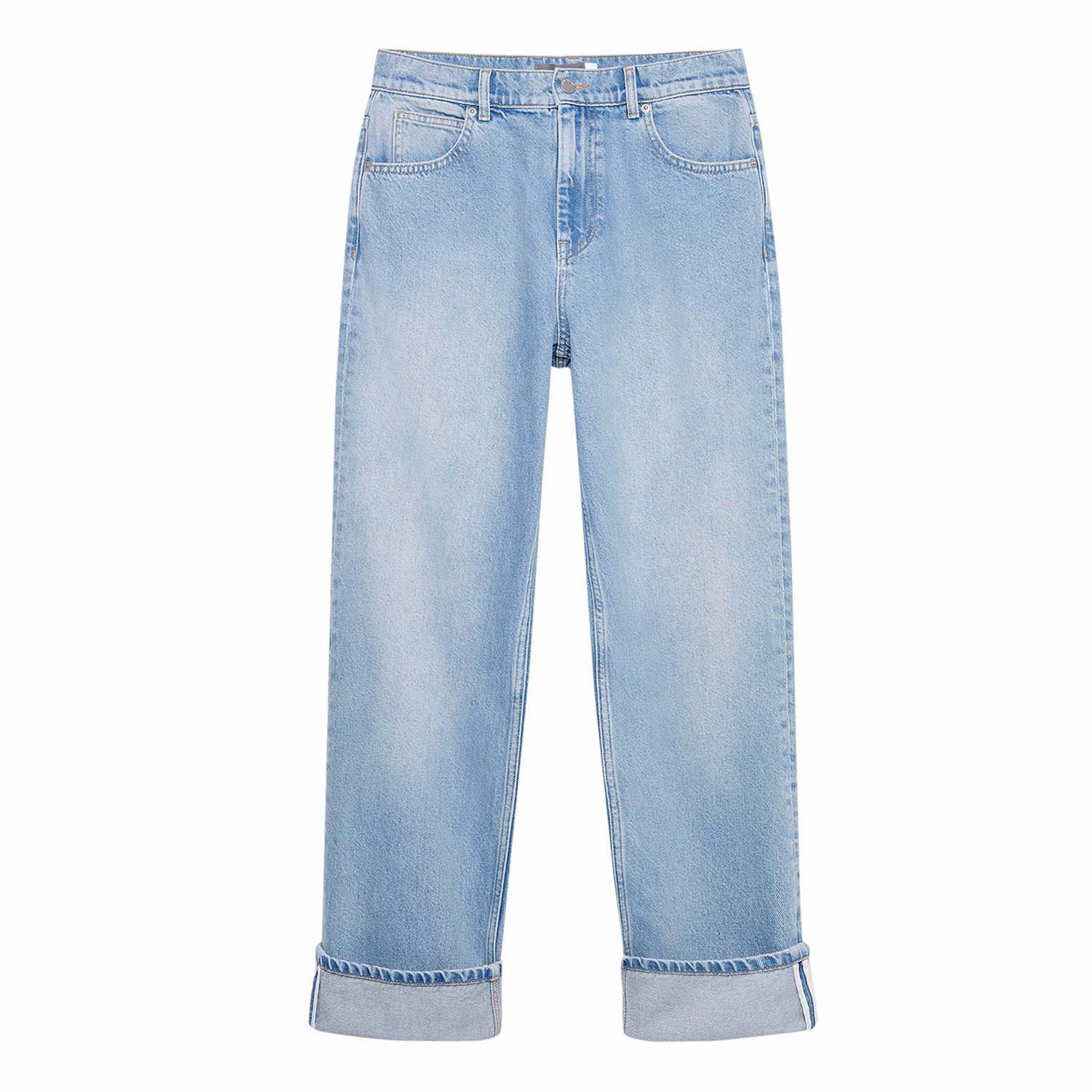 Mid-Rise Straight Leg Turn-Up Jeans
