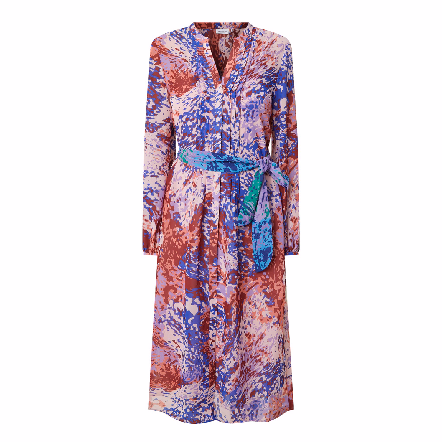 Abstract Belted Shirt Dress
