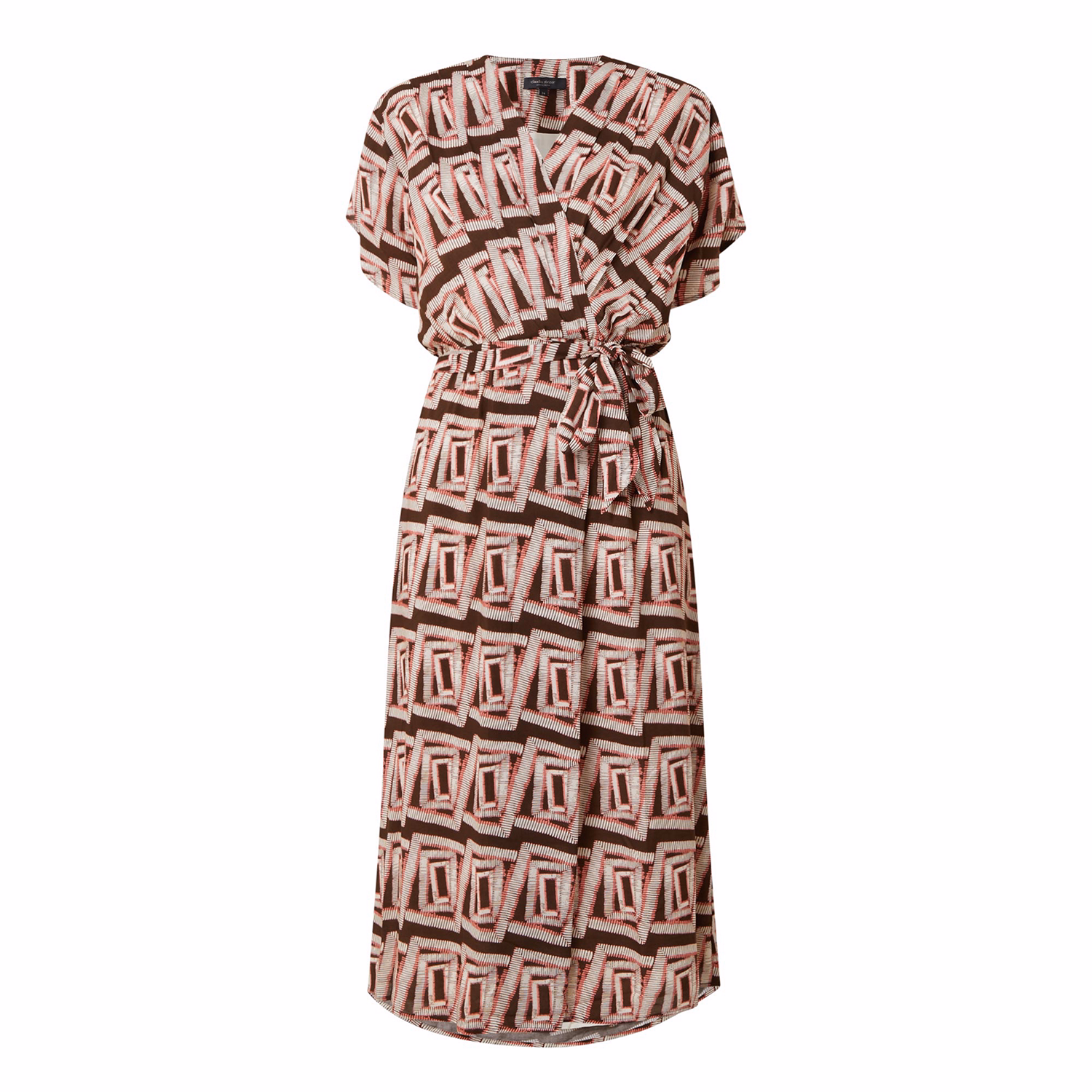 Geometric Tie-Belt Wrap Dress