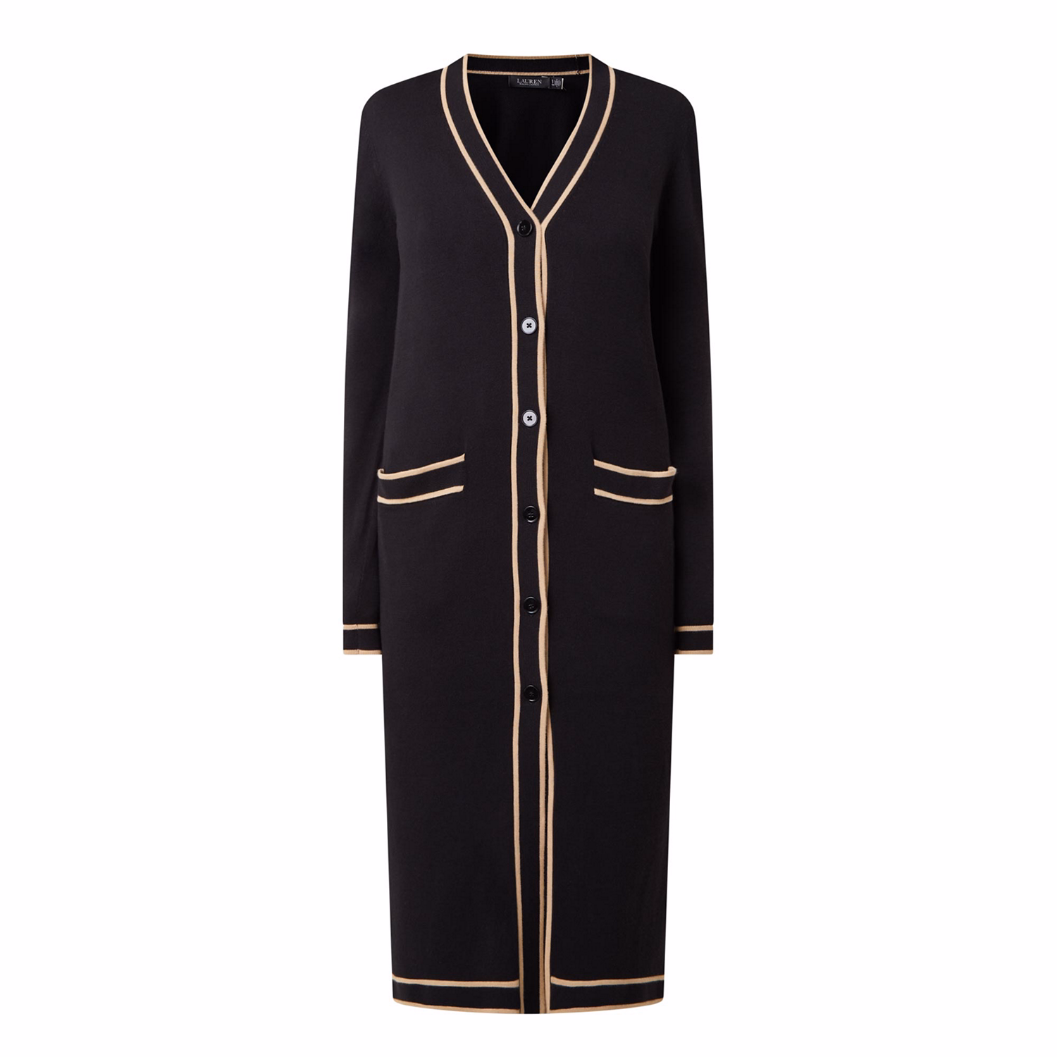 Contrast-Trim Longline Cardigan