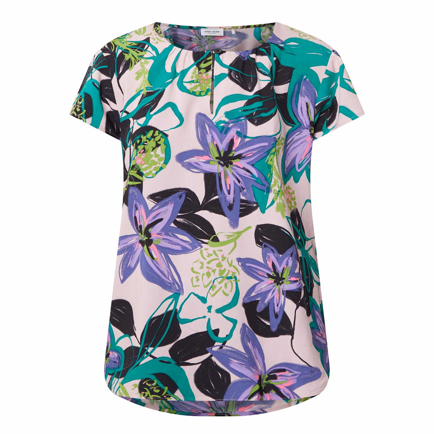 Keyhole-Detail Floral Print Blouse