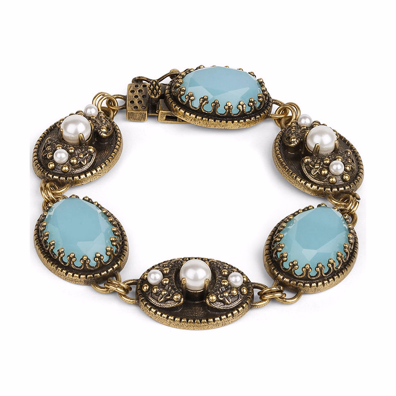 Aqua and Faux Pearl Stone Bracelet