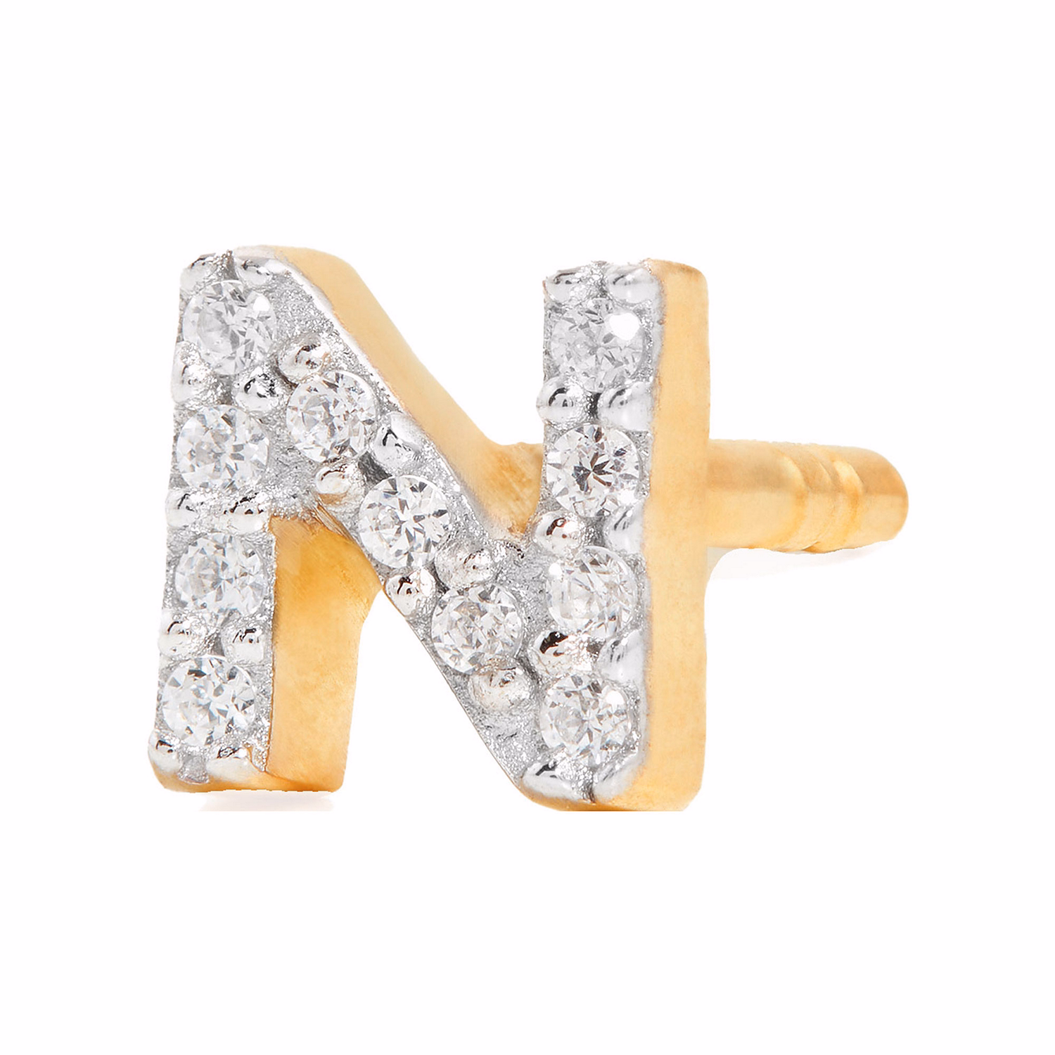 Pavé Gold Plated Initial Stud Earring N