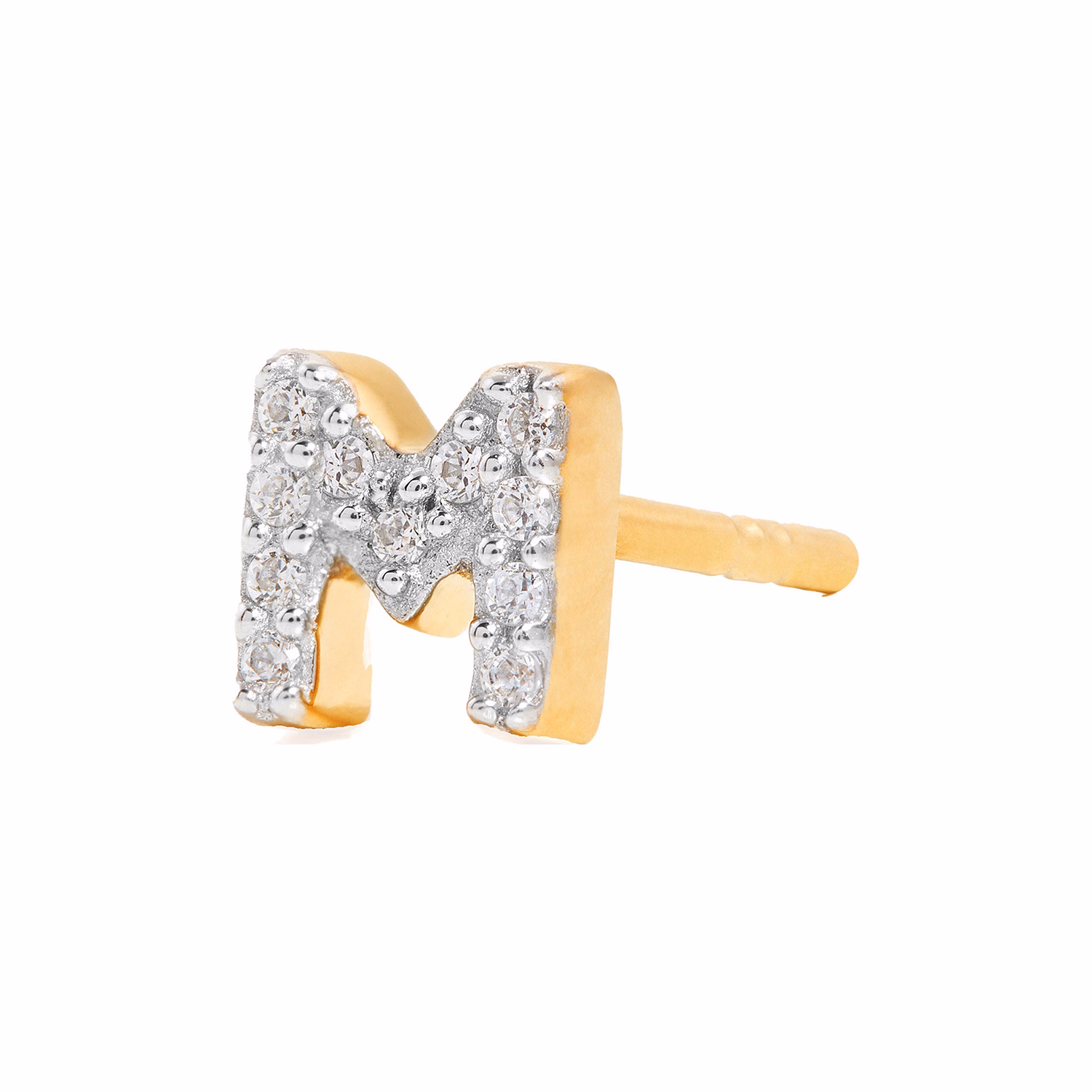 Pavé Gold Plated Initial Stud Earring M