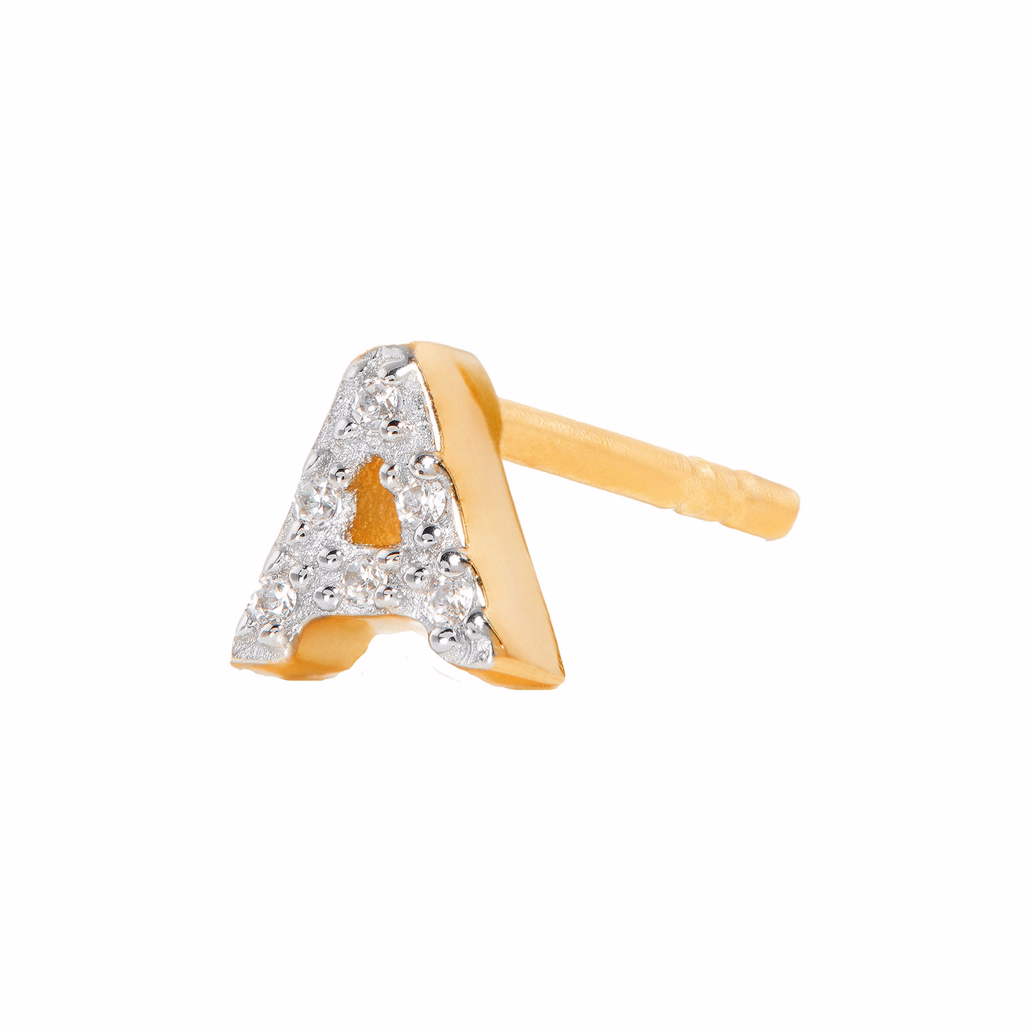 Pavé Gold Plated Initial Stud Earring A