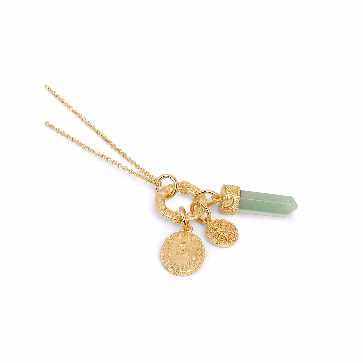 Gold Plated Green Aventurine Charm Pendant Necklace