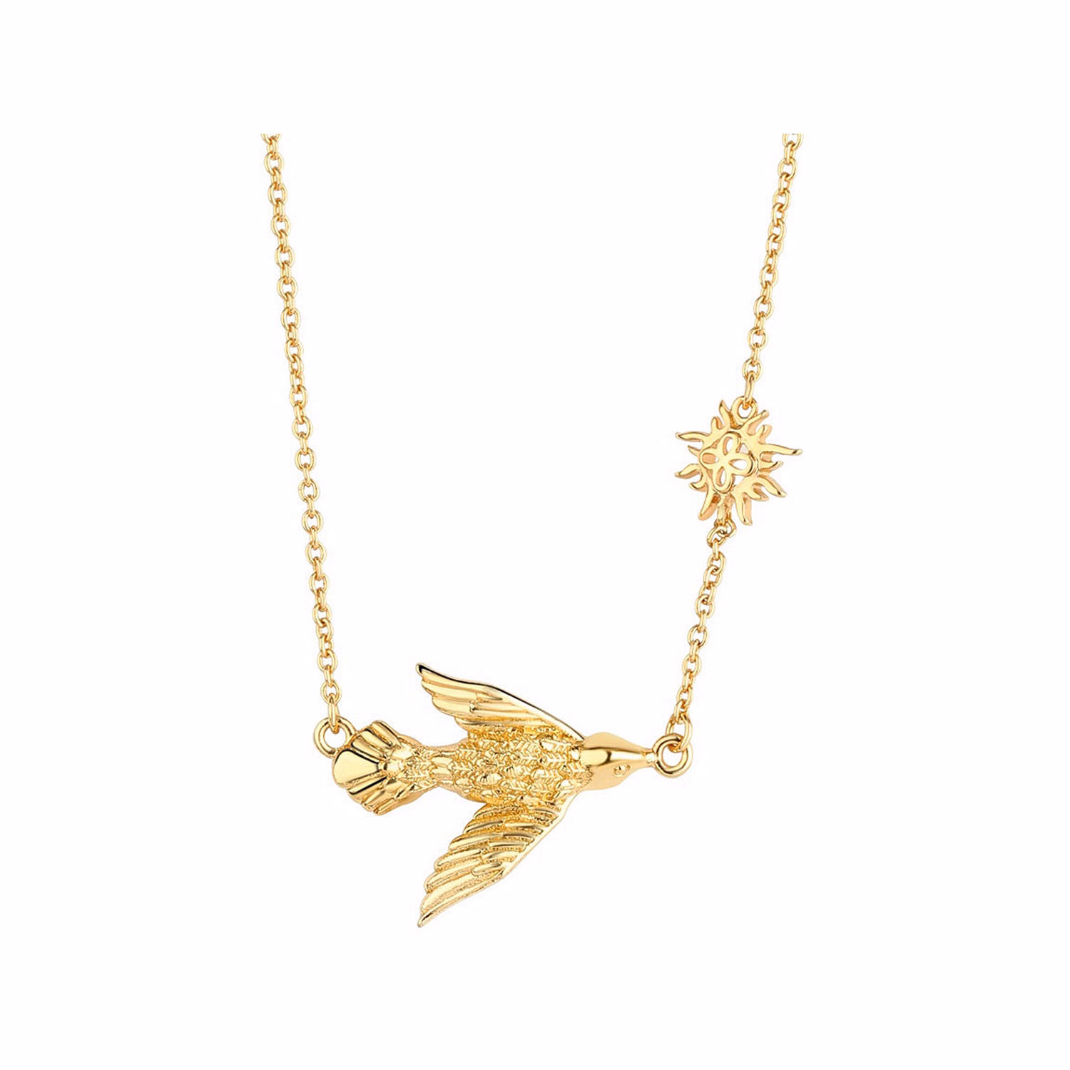 Gold Plated Bird and Sun Charm Necklace
