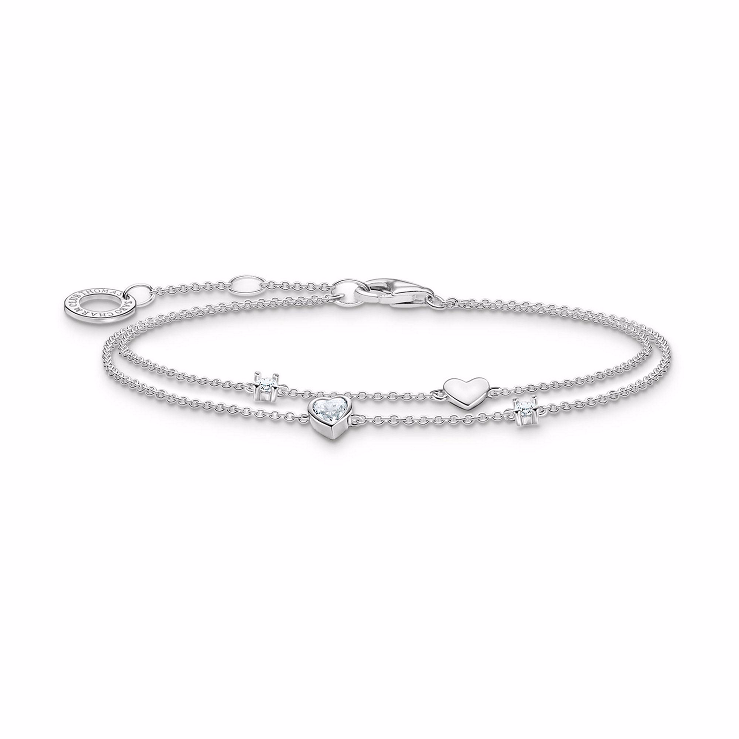 Hearts and White Stones Silver Bracelet